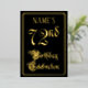 The front of this luxurious, elegant, foil seventy-second birthday celebration invitation design features the message “72nd Birthday Celebration” in fancy script-style text. It also features a personalized name. The background of the front is colored black by default (although it can be customized to a different color). The back features personalized details about the event, such as the date, time, location, and any other relevant information. Fancy, ornate, editable invitations like these might be used to invite guests to a birthday party/celebration being held to celebrate somebody’s seventy-second birthday. [~Z0000589]