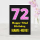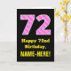 72nd Birthday: Pink Stripes and Hearts "72" + Name Card
