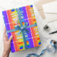 This vibrant and exciting birthday wrapping paper design features a large number “73” having a colorful rainbow spectrum inspired gradient pattern. It also features the message “HAPPY 73rd BIRTHDAY,”, and a personalized recipient name. The background also features a joyful multicolored rainbow spectrum inspired gradient pattern. Wrapping paper like this might be used when wrapping gifts being given to somebody in celebration of their 73rd birthday. [~Z0000572]