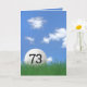 White golf ball in green grass with summer sky background for 73rd birthday.
