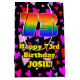 This fun and cheerful birthday themed gift bag design features a large number “73” having a rainbow spectrum gradient inspired pattern. It also features the message “Happy 73rd Birthday,”, and an editable name. The background features a pattern of red, pink, and purple heart shapes. A birthday themed giftbag like this might be a fun way to wrap a gift or present being given to somebody who is celebrating their 73rd birthday. [~Z0000551]