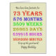 73rd birthday card counting down the years, days, months, hours, and minutes. A card to give pause for thought! Leap years have been taken into account!