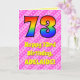 73rd Birthday: Pink Stripes & Hearts, Rainbow # 73 Card