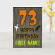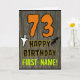 The front of this spooky and scary Halloween birthday themed greeting card design features a large number "73". It also features the message "HAPPY BIRTHDAY,", and a customizable name. There are also depictions of a bat and a ghost on the front. The inside features an editable birthday greeting message, or could perhaps be cleared and left blank if a message is to be written by hand instead. A personalized birthday card like this might be a fun way to send a message in celebration of somebody’s seventy third birthday that also falls on October 31st (Halloween). [~Z0000410]