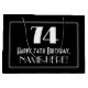 This Roaring Twenties appearance inspired vintage look birthday giftbag design features a large art deco look inspired number "74", the message "Happy 74th Birthday,", a customizable name, and a border pattern consisting of thin lines. It also features a black-colored background. A gift bag like this might be used when wrapping presents being given to somebody in celebration of their seventy fourth birthday. [~Z0000496]