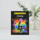 The front of this exciting and vibrant birthday party invitation postcard design has an editable name, a lively bursting celebratory fireworks inspired pattern, and the message "74 YEARS OLD!" having a colorful rainbow spectrum inspired gradient pattern. The back features an editable message with information about the party, such as when and where it is being held. Invitation postcards like this could be sent to potential guests of a party being held to celebrate the birthday of somebody who is turning 74 years old. [~Z0000452]