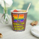 This fun and vibrant urban street art and graffiti inspired birthday paper cup design features a large number “74” having a colorful rainbow spectrum gradient inspired pattern. It also features the message “Happy 74th Birthday,”, and a custom name. The background features a brick wall pattern. Vibrant, colorful paper cups like this might be fun to use at a birthday celebration/party being held to celebrate somebody’s seventy fourth birthday. [~Z0000543]
