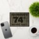 The front of this bold seventy-fourth birthday celebration/party foil invitation card features a custom name, a large number “74th”, the message “BIRTHDAY PARTY!”, and a border, all in foil. There is a rustic, yet elegant, faux wood grain look inspired pattern for the background of the front. The back features personalized details about the event, such as the date, time, location/venue, and any other useful information. Customizable invitations like these might be used to invite guests to a birthday party/gathering being held to honor somebody’s 74th birthday. [~Z0000598]