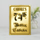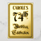 The front of this ornate seventy-fourth birthday party/celebration foil announcement card design features the message “74th Birthday Celebration” in elaborate script-style text. It also has an editable name. The back features personalized details about the event, such as the date, time, venue, and any other information that may be useful. Elaborate, fancy, customized invitations like these might be used to invite guests to a birthday party being held to honor somebody’s 74th birthday. [~Z0000596]