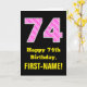 74th Birthday: Pink Stripes and Hearts "74" + Name Card