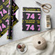 This joyful and fun birthday-themed wrapping paper design features a large number "74" with a stripes pattern containing heart shapes colored dark pink and light pink. It also features the birthday greeting message "Happy 74th Birthday,", and a custom recipient name. Birthday themed wrapping paper like this might be a fun way to wrap a gift or present being given to somebody who is celebrating their 74th birthday. It might also be a fun choice for somebody who has a birthday that falls on February 14 (Valentine's Day), due to its loving heart symbols and colors. [~Z0000435]