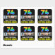 74th Birthday: Rainbow “74”; Custom Photos & Name Square Sticker