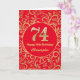 74th Birthday Red and Gold Floral Pattern Card