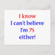 I know, I can't believe I'm 75 either! Humorous design for the 75 year old who knows they don't look 75. Makes a great 75th birthday gift.