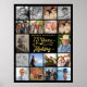 75th Birthday 18 Photos 75 Years in the Making Poster Print Sign. Celebrate a 75th birthday for him or her with photo memories through the years with this photo display printed on a poster print utilizing this easy-to-upload photo collage template with 18 square pictures featuring a retro calligraphy script typography title 75 YEARS IN THE MAKING and your custom text in your choice of text and background colors to coordinate with your party theme colors (shown in gold on black--the title graphic remains gold). OPTIONS: The sample is shown in a 18x24" size on Value Paper (Matte); other standard and custom print sizes and paper quality, Instant Digital Download file for printing locally or transferring the design to a foam board, banner, canvas or other product options are available on the ordering page. RESIZING TIP: Choose Custom Size for even borders by changing the height and width proportionately AFTER clicking the UNLOCK icon (looks like a chain link). ASSISTANCE: For help with design modification or personalization, color change, resizing or transferring the design, contact the designer BEFORE ORDERING via the Zazzle Chat MESSAGE tab or email makeitaboutyoustore@gmail.com.