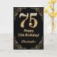 75th Birthday Black and Gold Glitter Frame Card