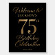 75th Birthday Black & Gold Welcome Sign