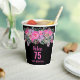 75th birthday black pink floral Paper Cups. Personalize name and age.