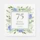 These 75th birthday blue hydrangeas party/brunch luncheon napkins are whimsical and stunning! With their watercolor multi-hued blue hydrangeas, wispy natural greenery they are perfect for celebrating your wife, mom, sister, aunt, friend, grandmother, great grandmother. By selecting Personalize this template and typing in your information you can see your gorgeous napkins in seconds! They'll look beautiful on your bar, buffet, and tables.