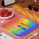 This exciting and fun birthday paper plate design features a large number “75” having a colorful rainbow spectrum inspired gradient pattern. It also features the message “HAPPY 75th BIRTHDAY,”, and a custom name. The background also features a joyful multicolored rainbow spectrum inspired gradient pattern. Vibrant birthday themed paper plates like this might be used at a birthday party for somebody who is celebrating their 75th birthday. [~Z0000583]
