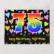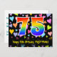 The front of this exciting, colorful, and fun birthday postcard design features a large number "75" having a rainbow spectrum gradient inspired pattern. It also features the message "Happy 75th Birthday,", and a personalized recipient name. The front additionally has a colorful and vibrant pattern of loving hearts. The back features a personalized birthday greeting message, or could perhaps be cleared and left blank if a message is to be written by hand instead. A personalized birthday postcard like this might be a fun way to send a message in celebration of somebody’s seventy fifth birthday. Postcards like this might also be used to invite guests to a birthday party or celebration being held for somebody who is turning 75 years old. [~Z0000448]