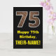 75th Birthday: Name, Faux Wood Grain Pattern "75" Card