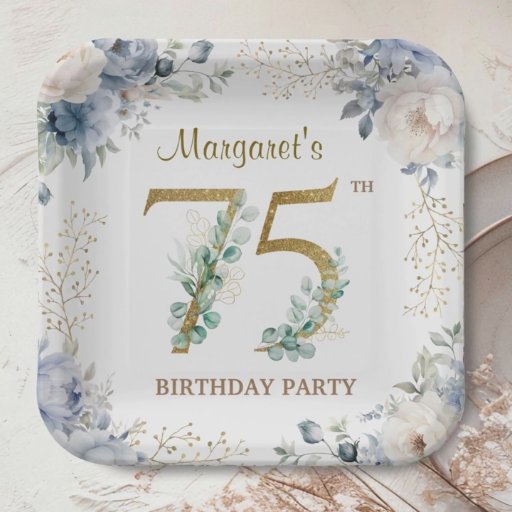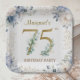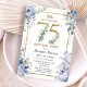 75th Birthday Party Elegant Dusty Blue Floral Invitation
