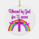 This charming 75 year old has been blessed by God for 75 years. Enjoy this pretty pink rainbow and cross 75th birthday design in Tees, Apparel, and Gifts such as mugs, tote bags, jewelry and more. Your heavenly 75 year old will adore this unique and one of a kind 75th customized birthday gift that she will treasure every year. Celebrate turning 75 with a meaningful 75th birthday prayer. Give the gift of an Christian 75th birthday design to rejoice in turning 75.