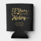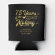 Retro 75th birthday personalized can coolers featuring a retro gold calligraphy script typography title 75 YEARS IN THE MAKING which incorporates his or her birth year within the design and your custom text in your choice of background color (shown in black). ASSISTANCE: For help with design modification or personalization, color change, resizing, transferring the design to another product or if you would like coordinating items, contact the designer BEFORE ORDERING via the Zazzle Chat MESSAGE tab below or email makeitaboutyoustore@gmail.com.