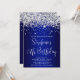 75th Birthday Silver Glitter Royal Blue Navy Ombre Invitation