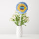 Retro sunglasses on yellow sunflowers with a blue summer sky background for 75th birthday.