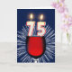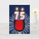A birthday glass of wine with candles. The candles are made up of the number 75, for an 75th birthday. Fireworks are exploding in the background. A birthday card suitable for anybody, male or female.