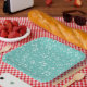 This cool design is a teal and white random number pattern with milestone number 75 repeated in varied sizes and angles in an all-over print.