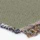 A quality printed throw has its advantages. This is a much finer weave throw than its loopier cousins, and though lighter, it is worth the investment for custom room accessorizing. The back is much prettier than the typical brown, and the fringe on the long sides very vivid, the selvage nicely done. Before photographing, I washed the throw in cold water, delicate, with a thicker woven throw the same size. On tumble dry low, this throw was dry in half the time as the other. This is a very practical quality if you use throws for furniture covers or to wrap up in frequently. The sleekness of the fabric makes it a great layer for accenting or protecting without the feeling of sitting on too much stuff. Perfect for napping or when you feel a light chill coming on. The color printing is beautiful and on this fabric, matched the design and color of my Photoshop image. This is an advantage for blending room fabrics and colors. The fringe on the short sides prints the colors from the design image and therefore varies from the side fringe. I streaked a white fractal line through the plaid pattern to give the illusion of weaving. This printed as crisp as an illusory thread, and put some white in the short side fringe, showing another advantage of print vs loomed- for artistic purposes, line lines, detail, and color integrity can be planned and preserved. My loomed throws have color limitations and more of a needlepoint texture. Print throws reproduce an exact image. The throw felt a little stiff straight out of the package, but this went away in the first delicate wash. Of course I searched the wash water for ink or bleeding and there was none.