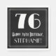This vintage look and 1920s-1930s style inspired birthday-themed paper napkin design features a large art deco style inspired number "76", the message "Happy 76th Birthday,", a customizable name, and a border pattern consisting of thin lines. Fun, customized birthday themed paper napkins like this might be used at somebody’s 76th birthday celebration. [~Z0000461]