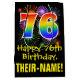 This fun, exciting, and colorful birthday-themed giftbag design features a large number "76" with a rainbow spectrum gradient style pattern, along with the message "Happy 76th Birthday,", and a customizable recipient name. It also features a colorful background pattern inspired by the appearance of bursting celebratory fireworks. A fun gift bag like this might be used when wrapping presents being given to somebody in celebration of their 76th birthday. [~Z0000509]