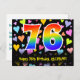 76th Birthday: Fun Hearts Pattern, Rainbow 76 Postcard