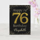 Happy Birthday with simulated golden glitter number 76 set on the color of your choice and framed by faux diamonds and rhinestones. Happy birthday and recipients name in off-white font. Personalize with name or message.