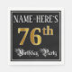 This fancy and ornate birthday paper napkin design features an editable name and the message “76th Birthday Party”. The large number “76th” has an imitation/faux gold-inspired coloring pattern, the words “Birthday Party” are in opulent script-style text, and the background is colored black by default (although it can be customized). Luxurious, opulent paper napkins like this might be useful at a birthday celebration/party being held in celebration of somebody’s seventy sixth birthday. [~Z0000565]