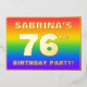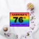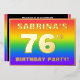 The front of this joyful seventy-sixth birthday celebration/party foil invitation card design features an editable name, a large number “76th”, the message “BIRTHDAY PARTY!”, and a border. The background of the front has an exciting, multicolored, rainbow spectrum inspired gradient pattern. The back features personalized details about the event, such as the date, time, location/venue, and any other useful information. Personalized invitations like these might be a fun way to invite attendees to a birthday gathering/party being held to honor somebody’s 76th birthday. [~Z0000599]
