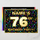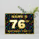 The front of this exciting and fun seventy-sixth birthday celebration/party foil invitation card design features a personalized name, a large number “76th”, the message “BIRTHDAY PARTY!”, and a border. The background of the front has a joyful, colorful pattern of stars. The back features personalized details about the event, such as the date, time, place/venue, and any other information that may be important. Customizable invitations like these might be a fun way to invite attendees to a birthday party being held to celebrate somebody’s 76th birthday. [~Z0000600]