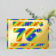 The front of this eye-catching seventy-sixth birthday celebration foil invitation card features an editable name, a large number “76th”, the message “BIRTHDAY PARTY!”, and a border, all featuring an exciting, multicolored, rainbow spectrum inspired gradient pattern. The back features personalized details about the event, such as the date, time, location/venue, and any other information that may be important. Upbeat, vibrant, customized invitations like these might be used to invite guests to a birthday gathering/party being held to honor somebody’s 76th birthday. [~Z0000593]