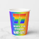 This fun and vibrant birthday paper cup design features a large number “77” with a colorful rainbow spectrum inspired gradient pattern, along with the message “HAPPY 77th BIRTHDAY,”, and a personalized name. The background also features a joyful multicolored rainbow spectrum inspired gradient pattern. Cheerful paper cups like this might be used when hosting a party for somebody in celebration of their seventy seventh birthday. [~Z0000576]