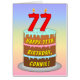 77th Birthday: Fun Cake & Candles, w/ Custom Name Card