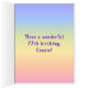 This cheerful and fun birthday-themed greeting card design features a cartoon-style depiction of a three-tier birthday cake having number-shaped candles on top showing the age “77“, along with the message “HAPPY 77TH BIRTHDAY,”, and a customizable recipient name. The background of the front has a multi-color pastel rainbow spectrum inspired gradient pattern. The inside features a customized birthday greeting message, or could perhaps be cleared and left blank if a message is to be written by hand instead. An upbeat, customizable birthday greeting card like this might be sent to celebrate somebody’s seventy-seventh birthday. [~Z0000626]