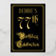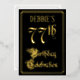 The front of this opulent and elegant foil seventy-seventh birthday celebration/party invitation design features the message “77th Birthday Celebration” in luxurious script-style text. It also has a personalized name. The background of the front is colored black by default (although it can be customized to a different color). The back features personalized details about the event, such as the date, time, location, and any other relevant information. Luxurious, ornate, customizable invitations like these might be used to invite guests to a birthday celebration being held in celebration of somebody’s 77th birthday. [~Z0000589]