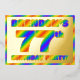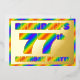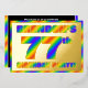 The front of this upbeat seventy-seventh birthday celebration foil invitation card features a personalized name, a large number “77th”, the message “BIRTHDAY PARTY!”, and a border, all featuring a vibrant, colorful, rainbow spectrum inspired gradient pattern. The back features personalized details about the event, such as the date, time, place/venue, and any other important information. Joyful, fun, customizable invitations like these might be used to invite guests to a birthday gathering being held to celebrate somebody’s 77th birthday. [~Z0000593]