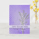 Lily of the valley bouquet with ribbon on purple pin dot background for 78th birthday.