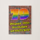 This fun and exciting urban graffiti and street art inspired birthday jigsaw puzzle design features a large number “79” with a colorful rainbow spectrum gradient inspired pattern, along with the message “Happy 79th Birthday,”, and a personalized name. The background has a brick wall pattern. A colorful, editable birthday puzzle like this might be used to celebrate somebody’s seventy-ninth birthday. [~Z0000545]