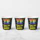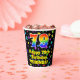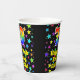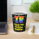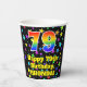 This cheerful and colorful birthday-themed paper cup design features a large number “79” with a rainbow spectrum gradient inspired pattern, along with the message “Happy 79th Birthday,”, and a custom name. The background features an exciting and colorful pattern inspired by a field of stars. Vibrant, colorful paper cups like this might be fun to use at a birthday celebration being held to celebrate somebody’s seventy ninth birthday. [~Z0000540]
